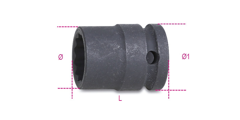 Tizenkétszögű gépi dugókulcs, 1/2"-os négyszögletes csatlakozó, standard sorozat, foszfátozott 22
