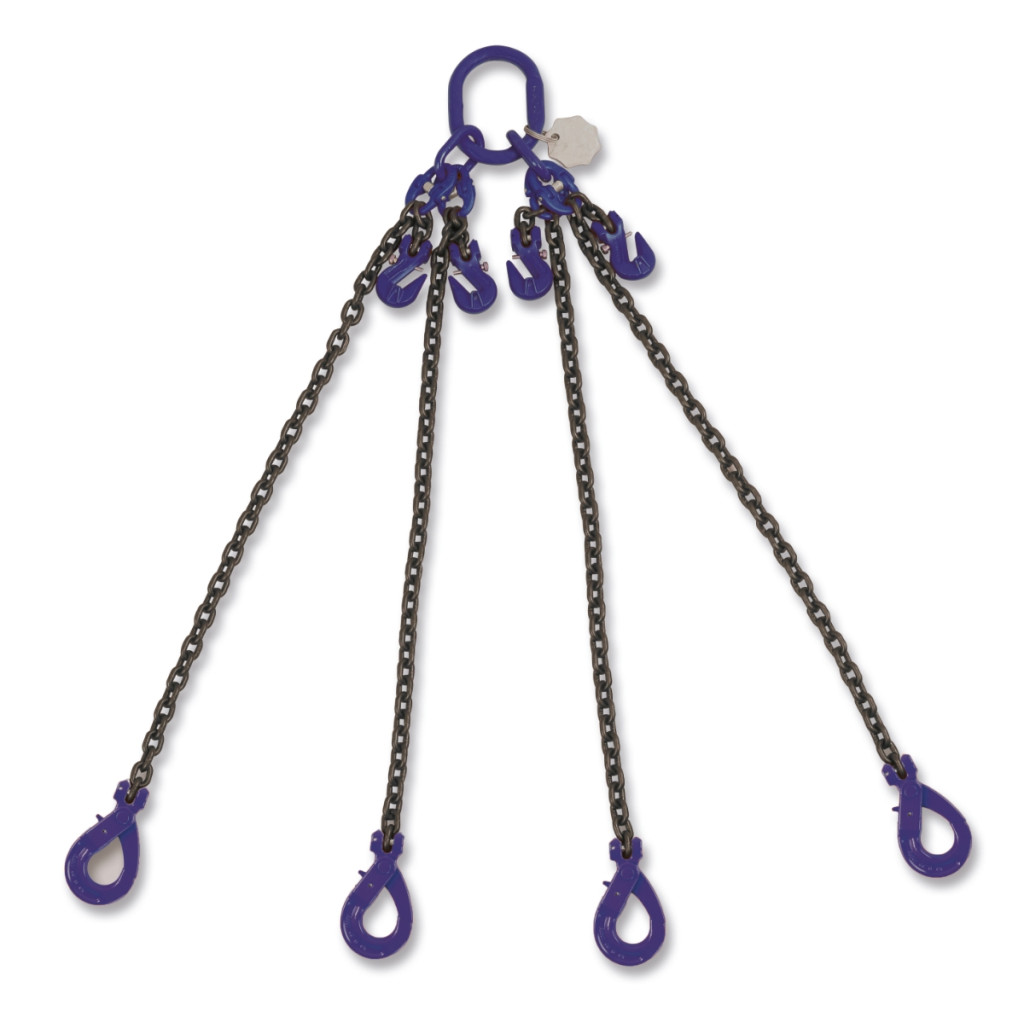 Emelőlánc, 4 karos, önzáró, kengyeles horgokkal 10. biztonsági fok