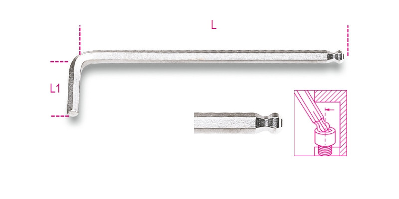 96BPC 3 mm Hajlított gömbfejű imbuszkulcs, krómozott