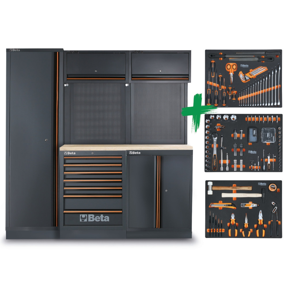 C45PRO 2.0 B7W műhelybútor-kombináció 196 Beta Worker univerzális szerszámból álló választékkal