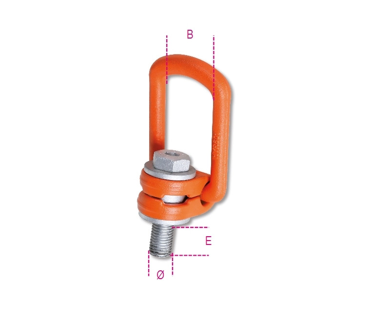 - 360°-ban elforgatható szemescsavar forgócsuklóval, teher rögzítésére és (90°-ban történő) húzására javasolt.